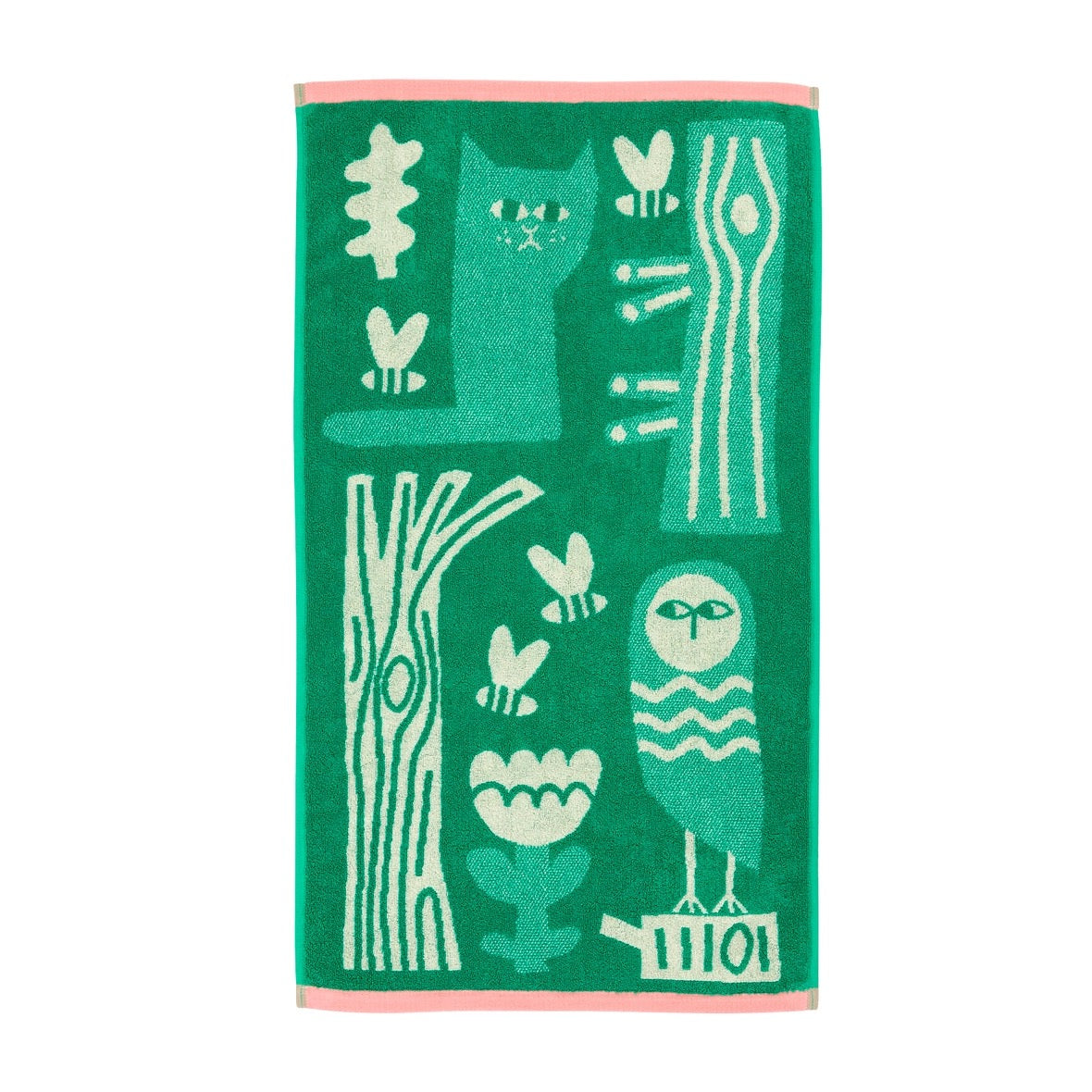 The birds and bees, and a cat and some trees will keep you company in the bathroom - or why not share the happy design with others when you take it to the gym or beach?