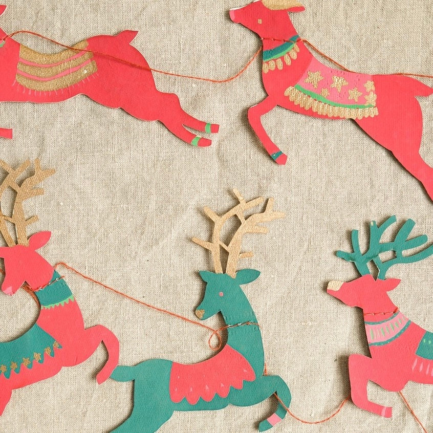 Jewel coloured reindeers fly along this three metre length, spreading Christmas cheer for all to hear.