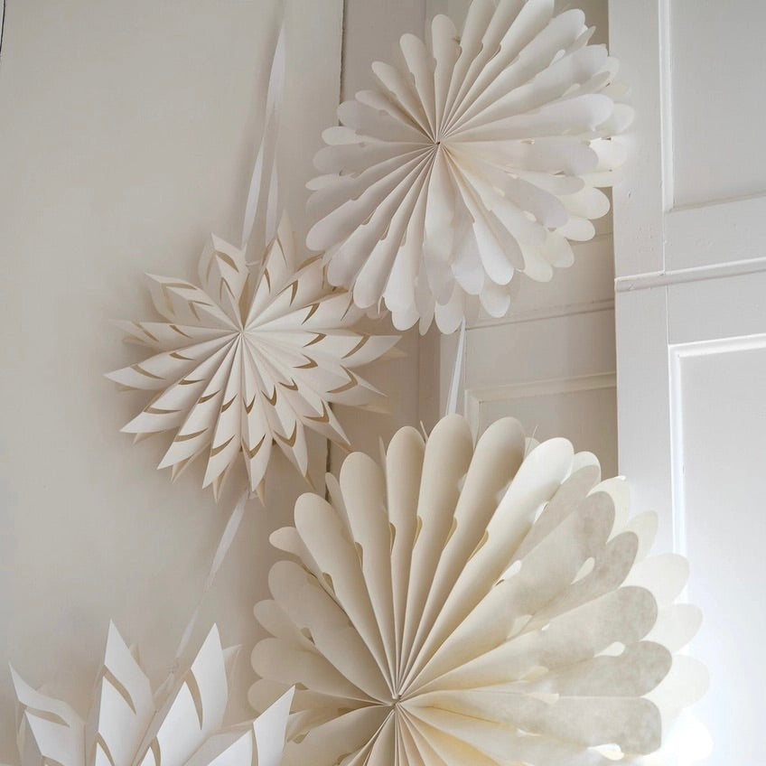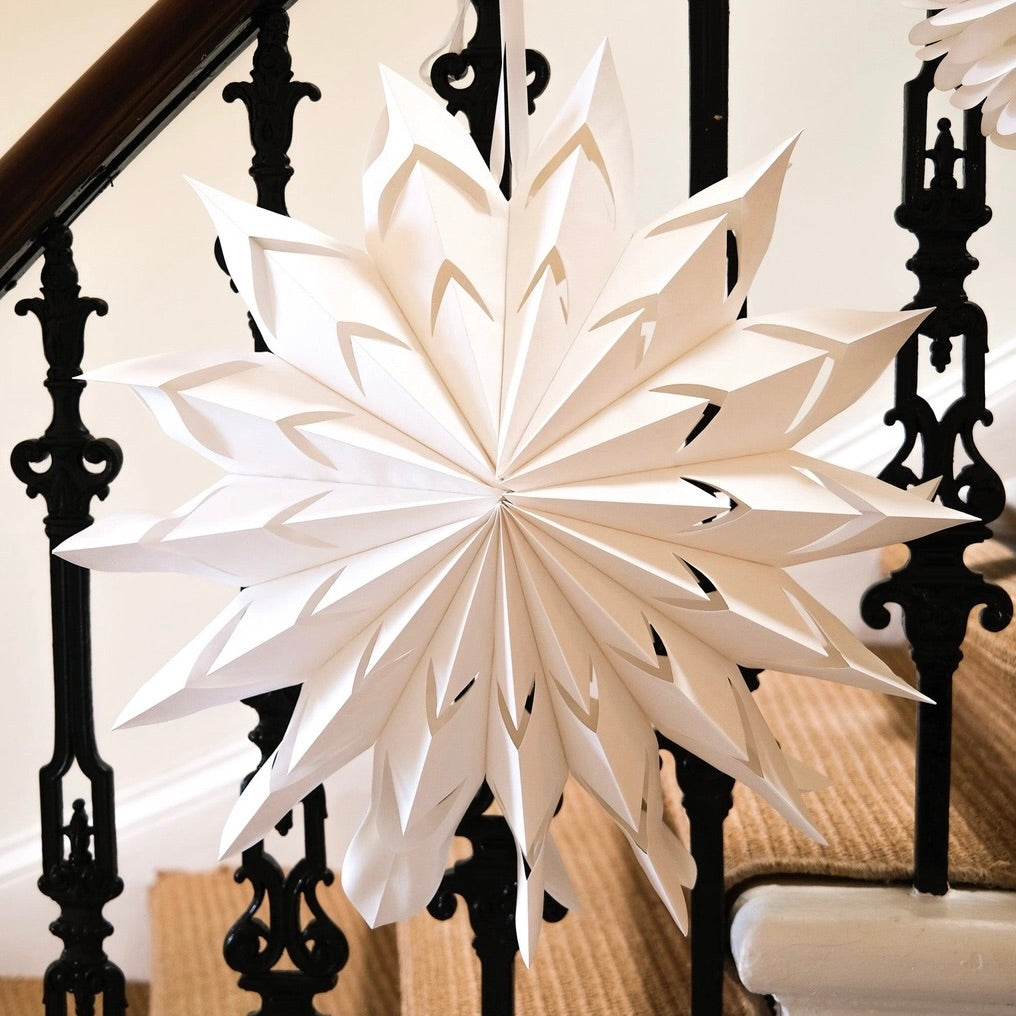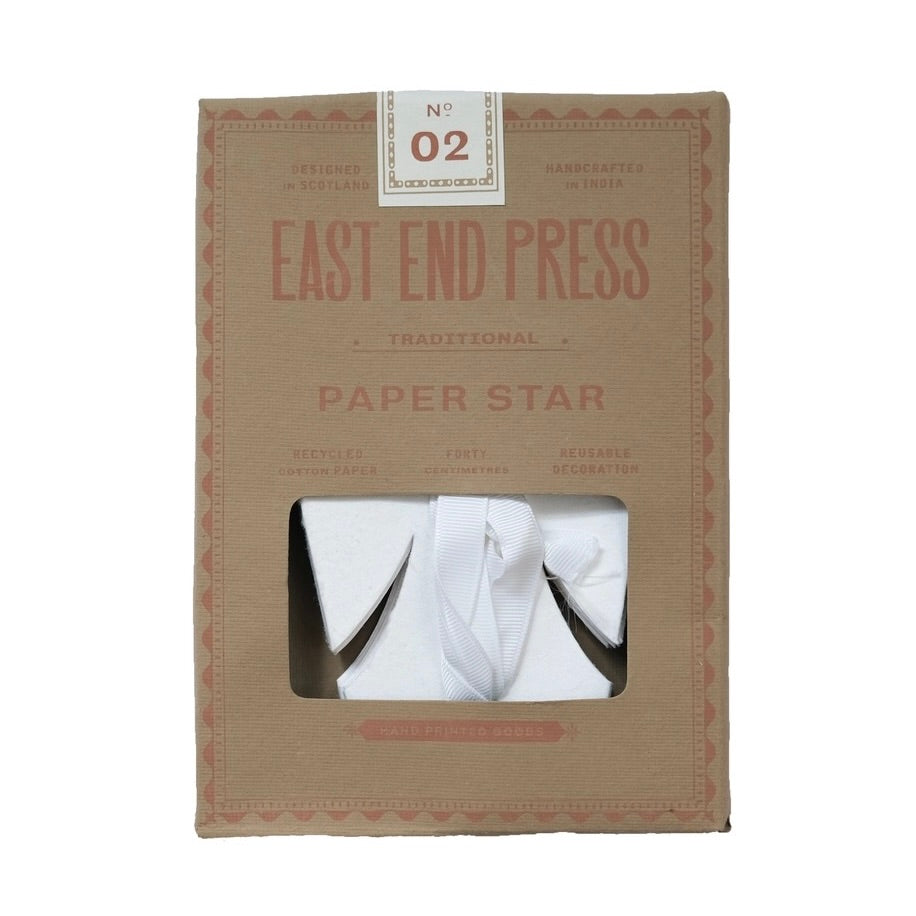 A beautiful and sustainably-made addition to your home: this Small Traditional White Star is hand-crafted from 100% recycled cotton pulp paper, and can be reused year-after-year. Use as a tree topper, hang in your windows, group various sizes for an eye-catching display. So many great uses for these lovely paper stars!