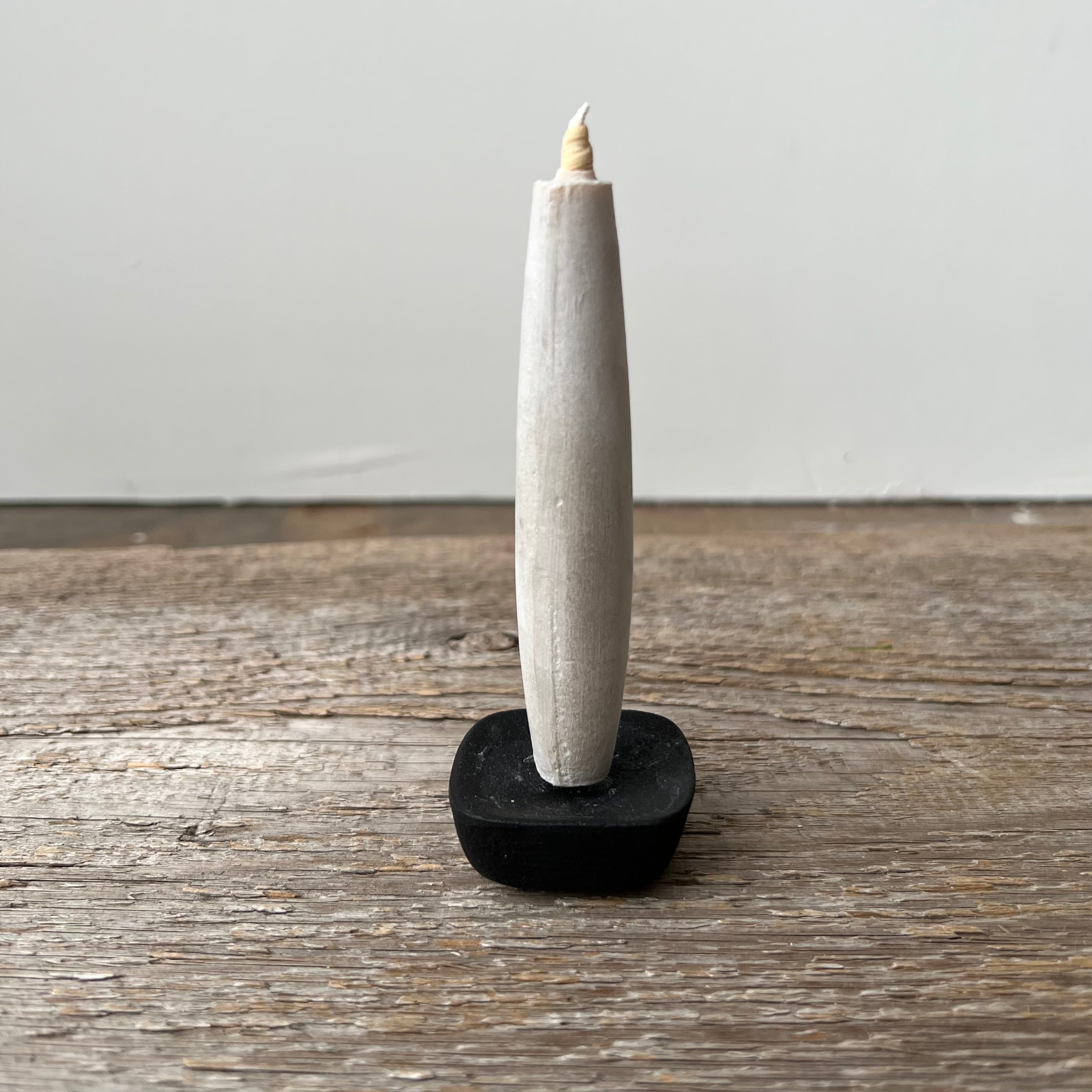 The Tohaku small candle is a beautiful shape and creates a mesmerizing round flame as they created in the wa-rousoku tradition with a washi core. The Koma candle stand is made of solid cast iron and is compact but very stable. Each medium Tohaku candle burns for 130 minutes each