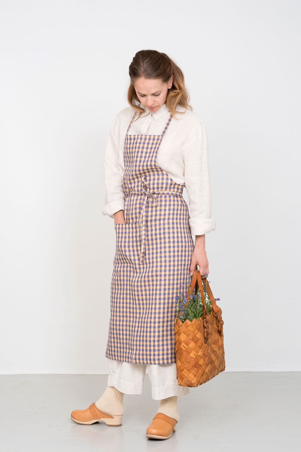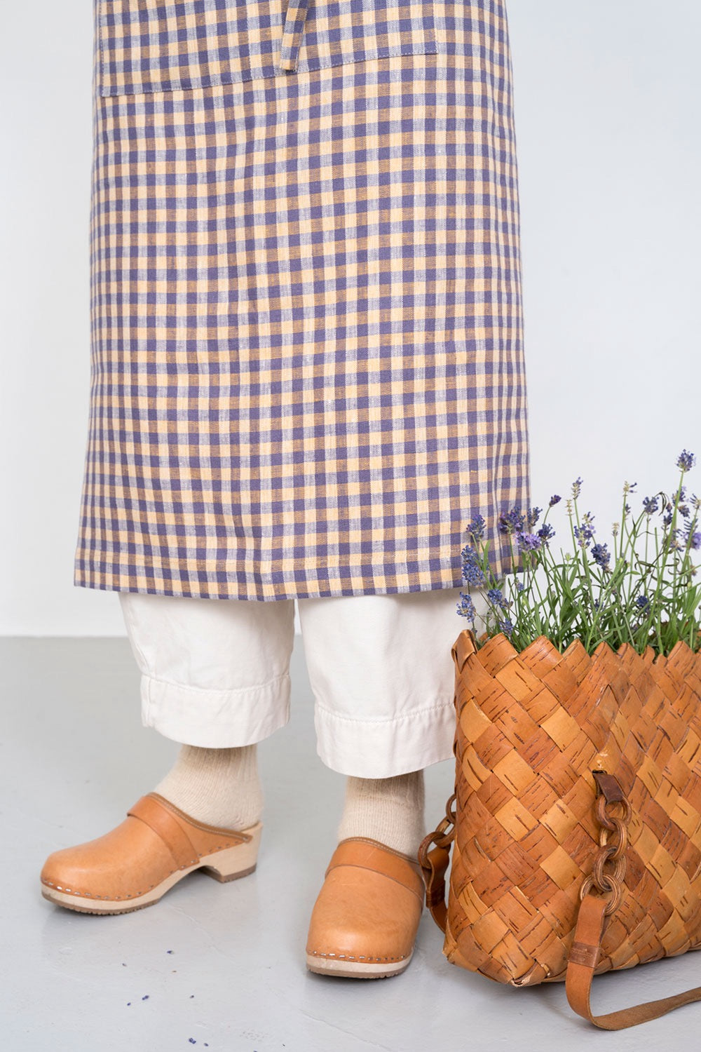 Linen Full Apron | Purple and Yellow Check (Phil)