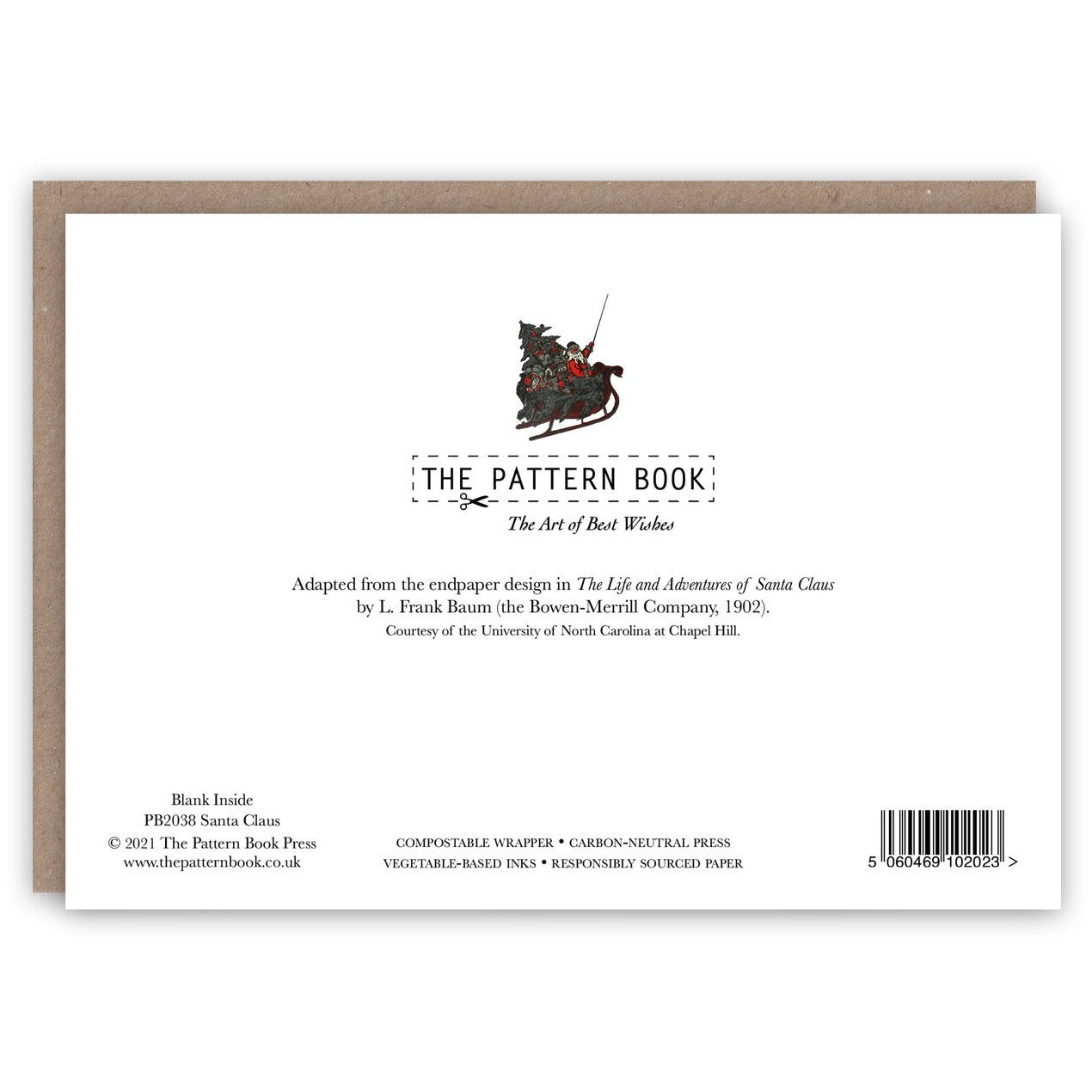 Santa riding off into a Japanese style (we think) crimson moon! Adapted from the endpaper design in The Life and Adventures of Santa Claus by L. Frank Baum (the Bowen-Merrill Company, 1902). Courtesy of the University of North Carolina at Chapel Hill.
