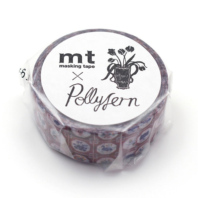 This MT x Polly Fern collab tape is so so pretty.  It looks like a beautiful hand painted tile pattern, with shades of burgundy, greens and marigold. There has to be well over 20 hand panted micro tiles per repeat - the detail is amazing!! We can't wait to tape a notecard on the wall or use it in our notebook.