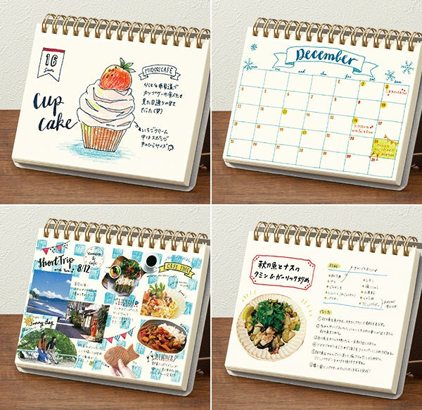 It is a notebook that can be made like a desk calendar with one touch. Let's draw life logs, daily sketches, travel memories, etc. and decorate them casually.