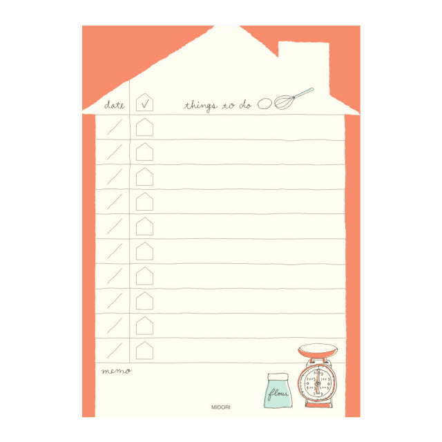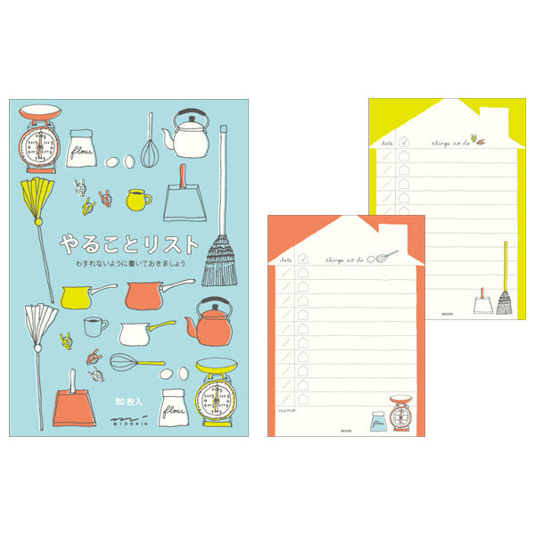 A small notepad to help you keep lists of things you want to do! While not limited to lists of things to do at home, the illustration for cleaning, laundry and cooking may want you to create lists with these to dos on them.