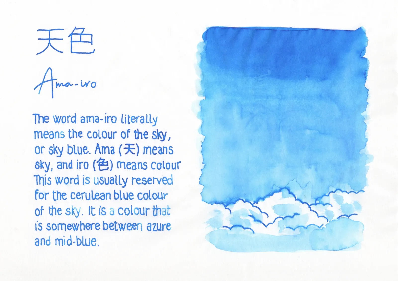 A beautiful cerulean blue. Colors inspired by nature, PILOT has launched the Iroshuzuku line so you now can write with your fountain pens in the same beautiful colors.