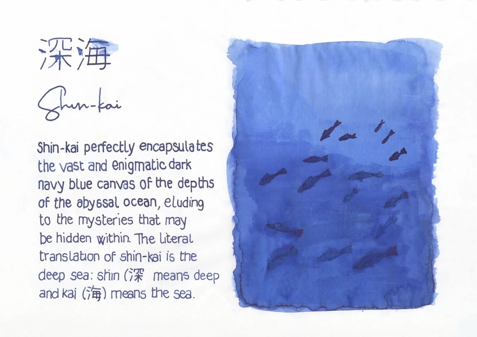 A steely blue.  These colors are inspired by nature, PILOT has launched the Iroshuzuku line so you now can write with your fountain pens in the same beautiful colors.